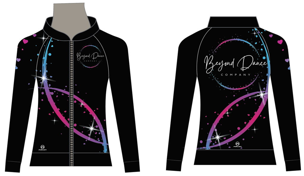 Custom Made Full Zip Dancetech Bomber Jacket with ribbed cuffs and waistband. Dancetech Fabric is Made to move. The Malley bomber training jacket is ideal for studio or outdoor classes.