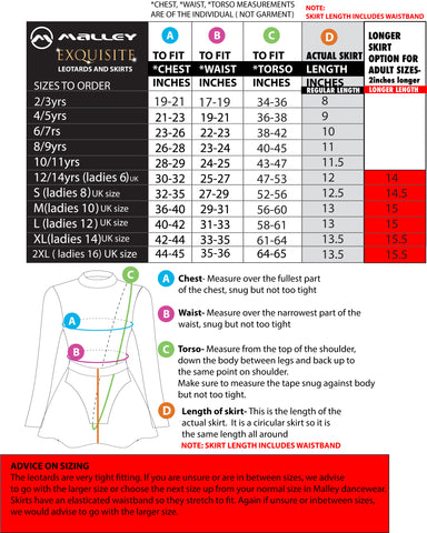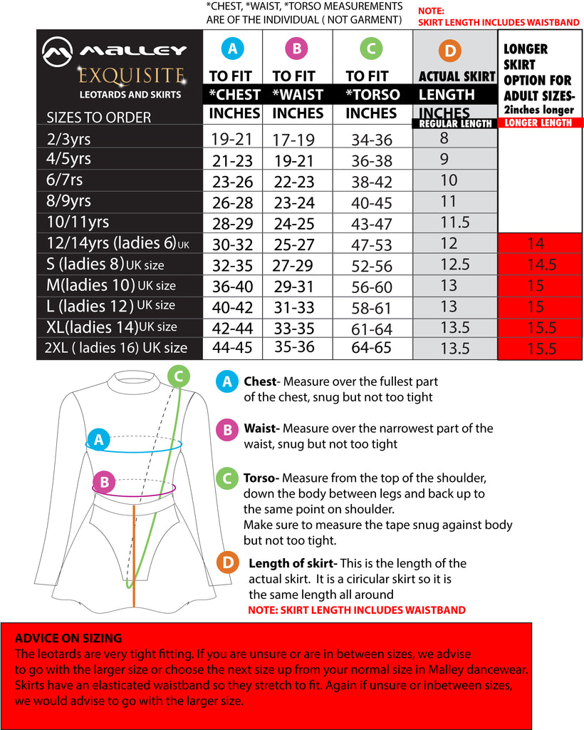 SPECIAL SKIRT SIZING - approved by Chrissy Zeo - please contact your teacher for any length queries.